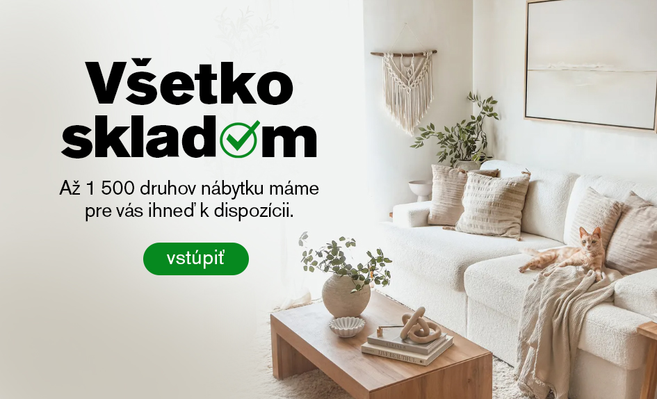 Preto máme všetok nábytok fyzicky skladom u nás – viac než 1 500 druhov pripravených na okamžité odoslanie.