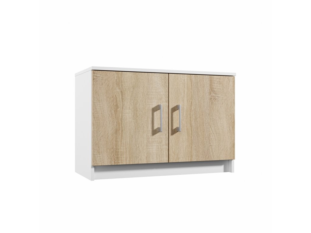 Dvojdverový botník Rozmery (šírka x výška x hĺbka): 80 x 55 x 38 cm Materiál: LTD lamino, úchytky plast Farba: korpus - biela, dvierka - dub sonoma Dodanie v demonte.Dodatočné parametre