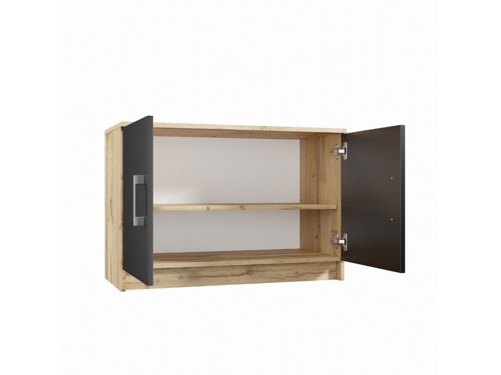 Dvojdverový botník Rozmery (šírka x výška x hĺbka): 80 x 55 x 38 cm Materiál: LTD lamino, úchytky plast Farba: korpus - dub wotan, dvierka - čierna Dodanie v demonte.Dodatočné parametre