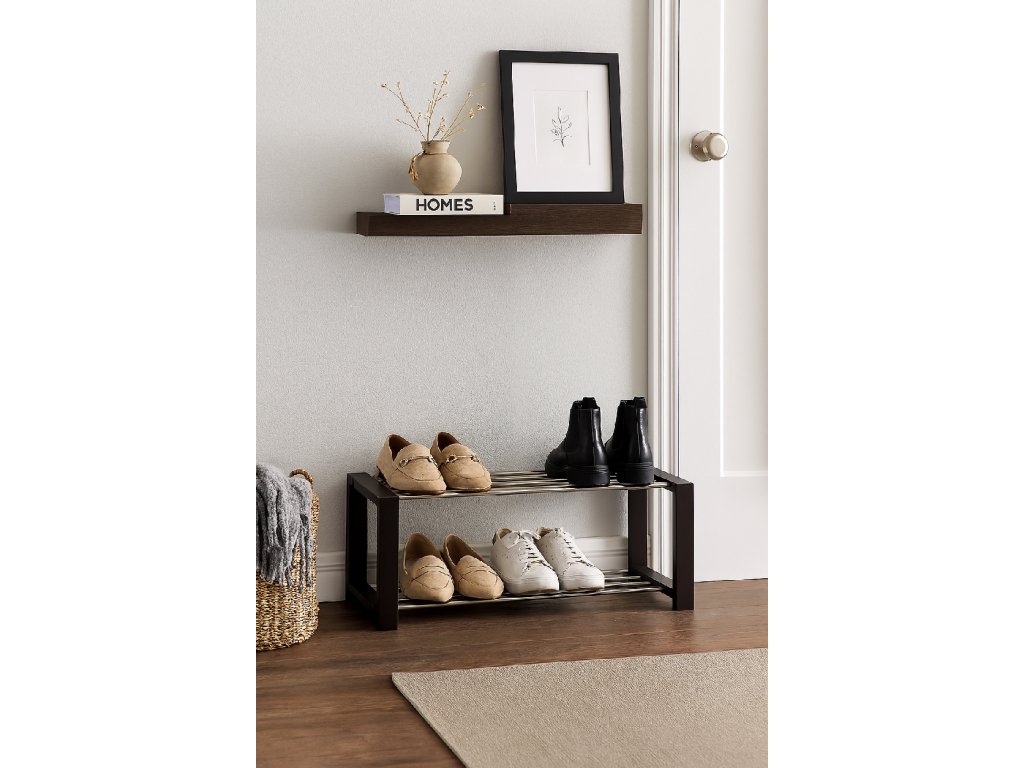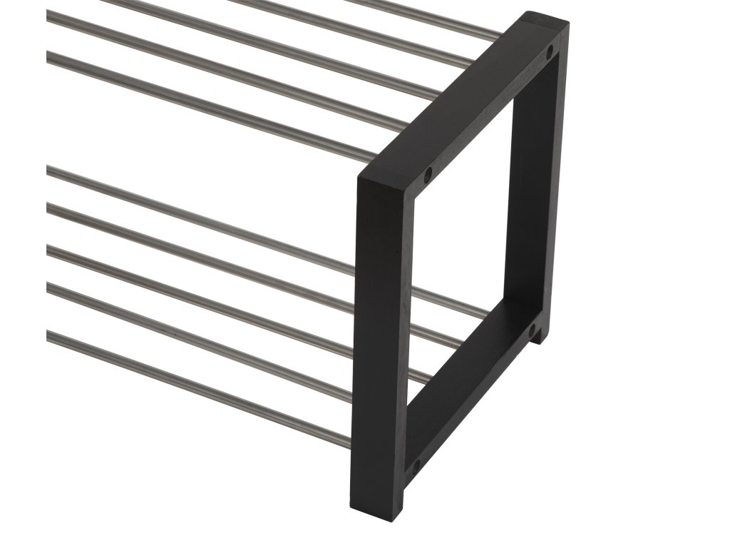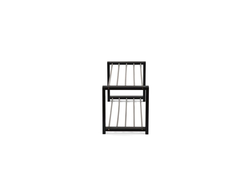 Jednoduchý a praktický botník s dvoma poschodiami na úsporu miesta. Konštrukcia z pevných kovových trubiek zaisťuje stabilitu a dlhú životnosť. Bočné rámy poskytujú pevnú oporu a zároveň elegantný vzhľad. Otvorený dizajn umožňuje dobré vetranie obuvi a ľahký prístup. Vhodný do predsiene, chodby alebo šatne na každodenné použitie. Farba: čierna / strieborná Rozmery (šírka x výška x hĺbka): 80 x 32 x 30 cm Materiál: preglejka, kov Nosnosť: 10 kg Dodávané v demonte.Dodatočné parametre