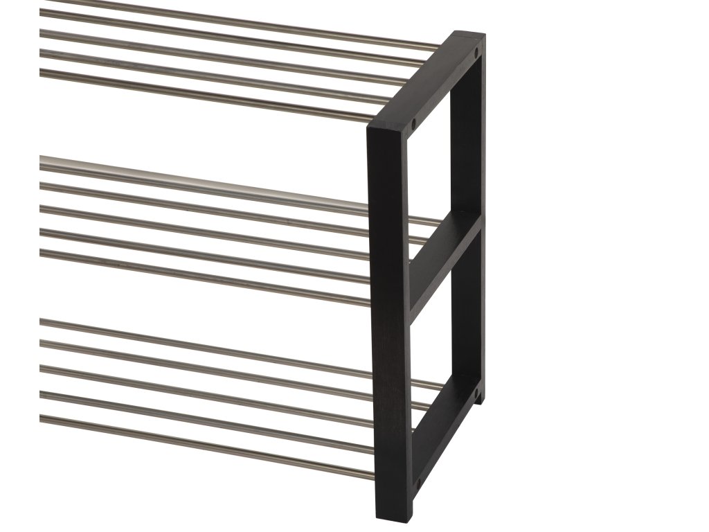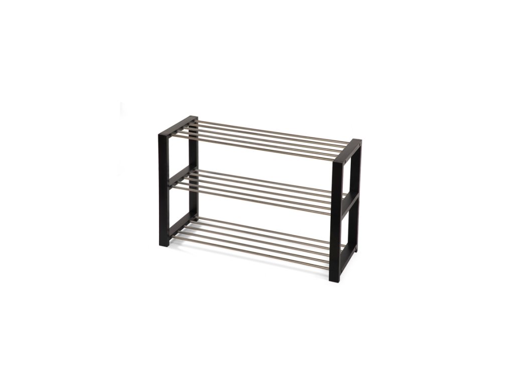 Jednoduchý a praktický botník s dvoma poschodiami na úsporu miesta. Konštrukcia z pevných kovových trubiek zaisťuje stabilitu a dlhú životnosť. Bočné rámy poskytujú pevnú oporu a zároveň elegantný vzhľad. Otvorený dizajn umožňuje dobré vetranie obuvi a ľahký prístup. Vhodný do predsiene, chodby alebo šatne na každodenné použitie. Farba: čierna / strieborná Rozmery (šírka x výška x hĺbka): 80 x 50 x 30 cm Materiál: preglejka, kov Nosnosť: 10 kg Dodávané v demonte.Dodatočné parametre