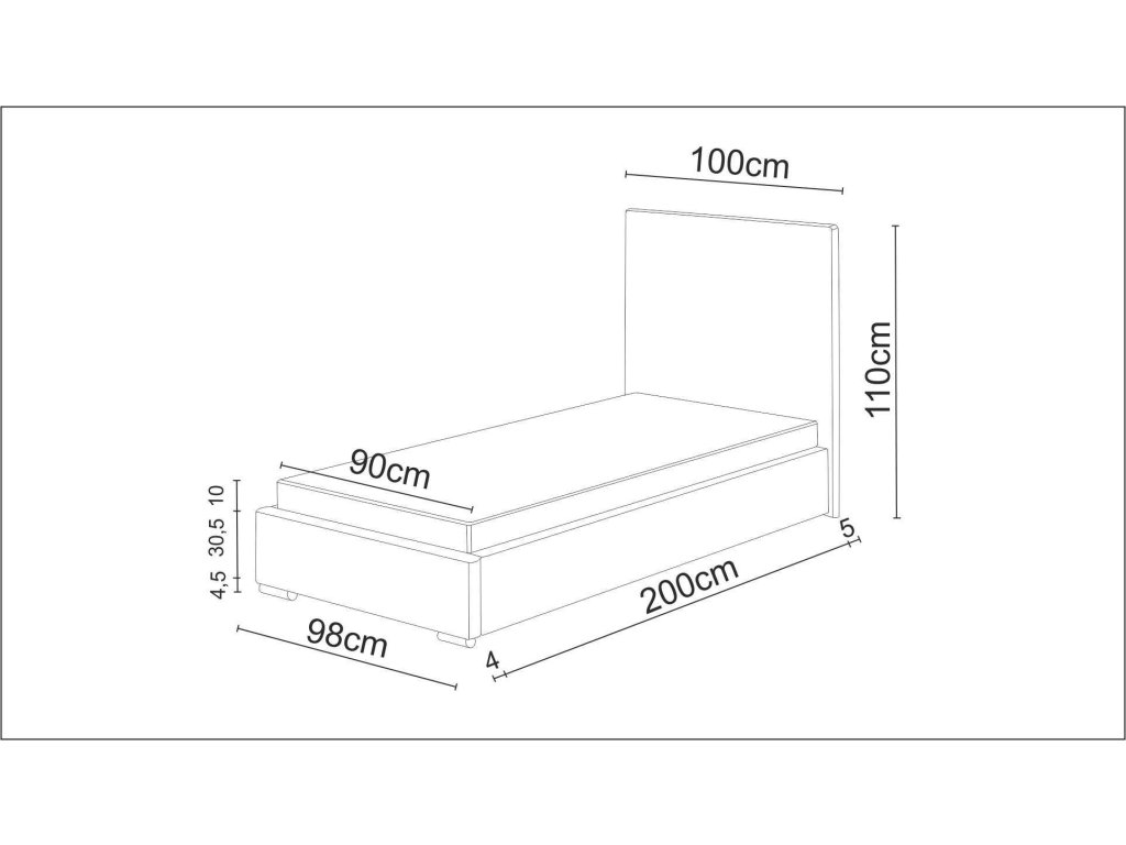 Čalúnená posteľ 90x200 cm V cene postele nie je rošt ani matrac. Poťahová látka: sofia 20 = čierna látka Rozmery (šxhxv): 100 x 209 x 35 cm Čelo postele: prešívané - šírka: 98 cm - výška: 110 cm Dodanie v demonte. Záruka 24 mesiacov.Dodatočné parametre