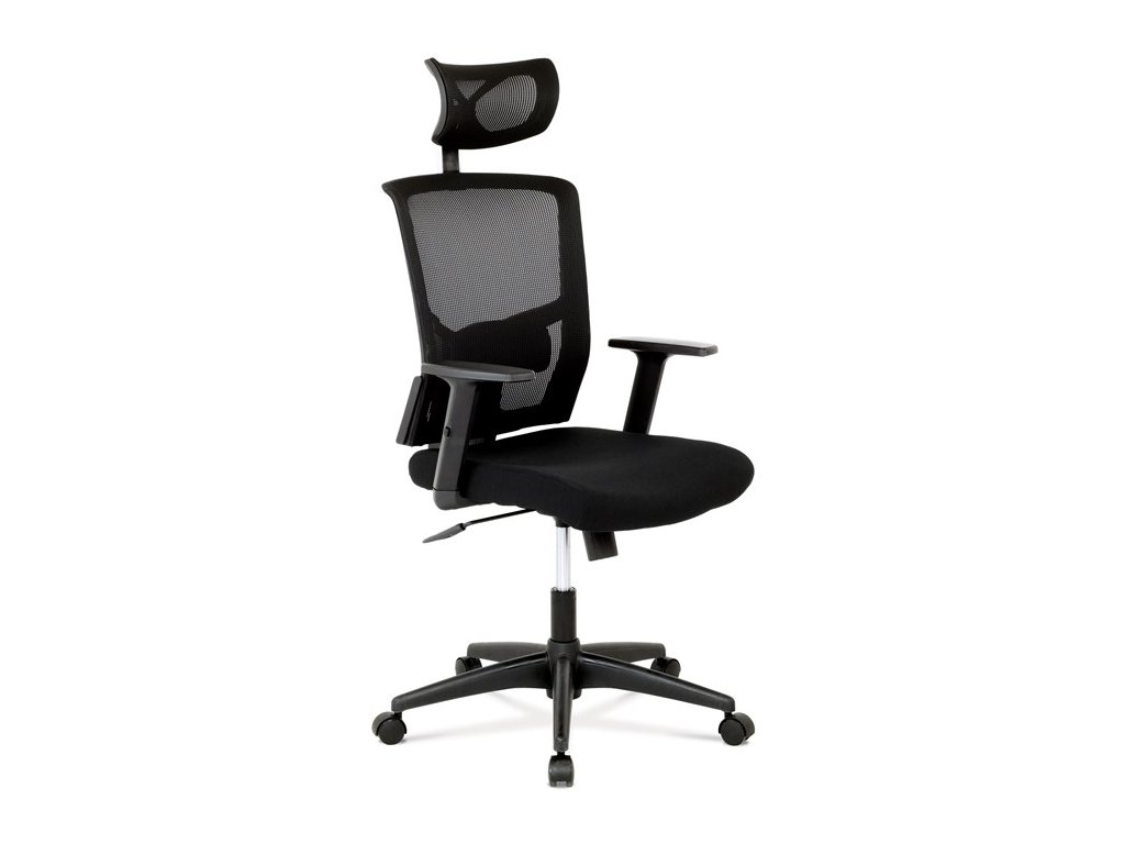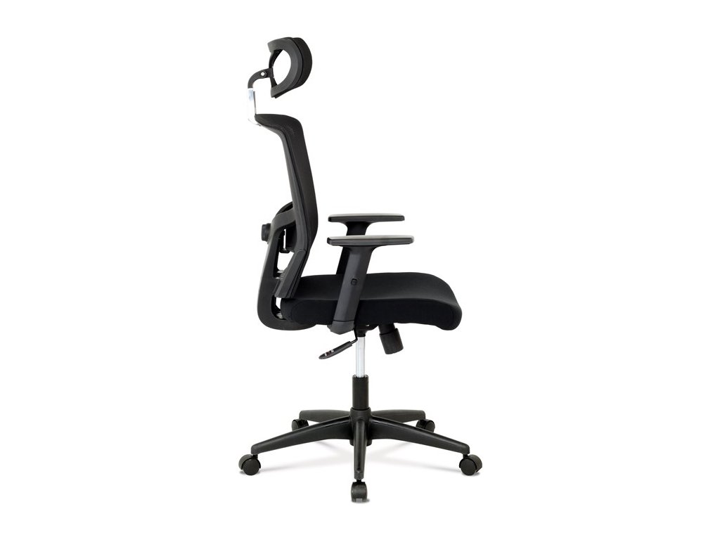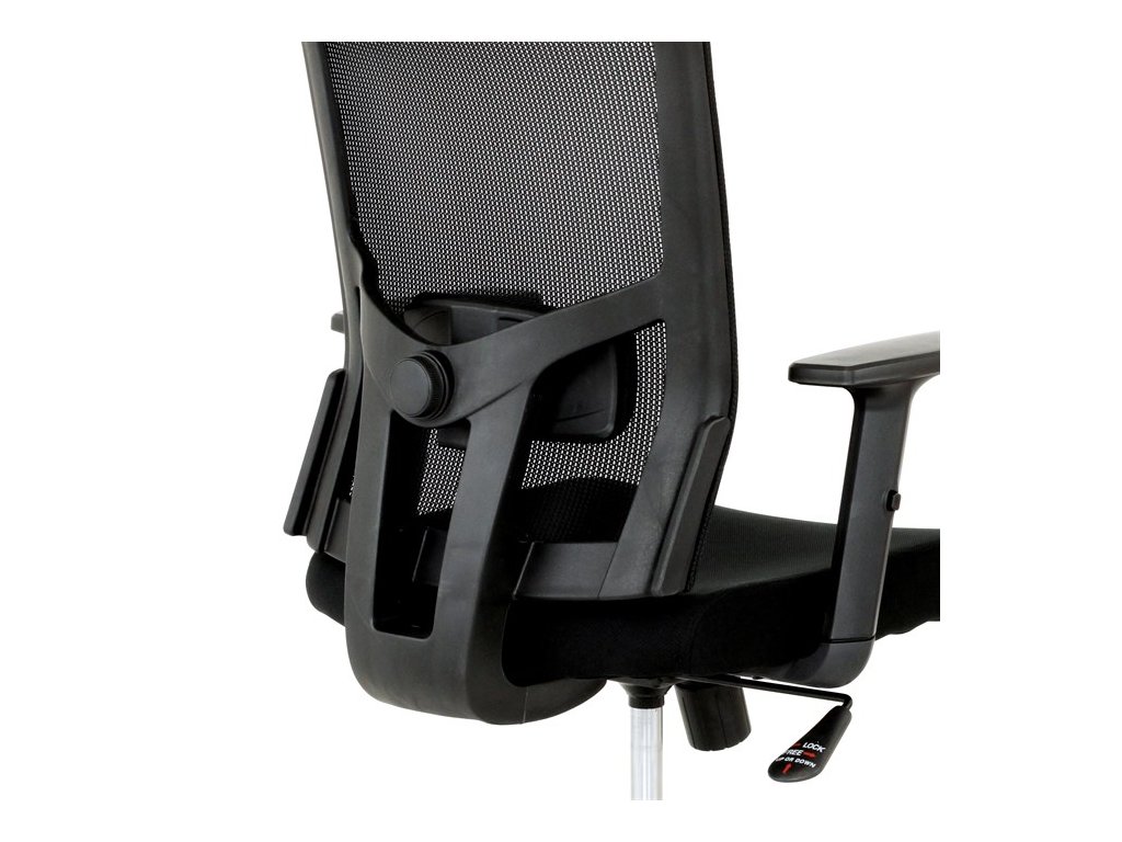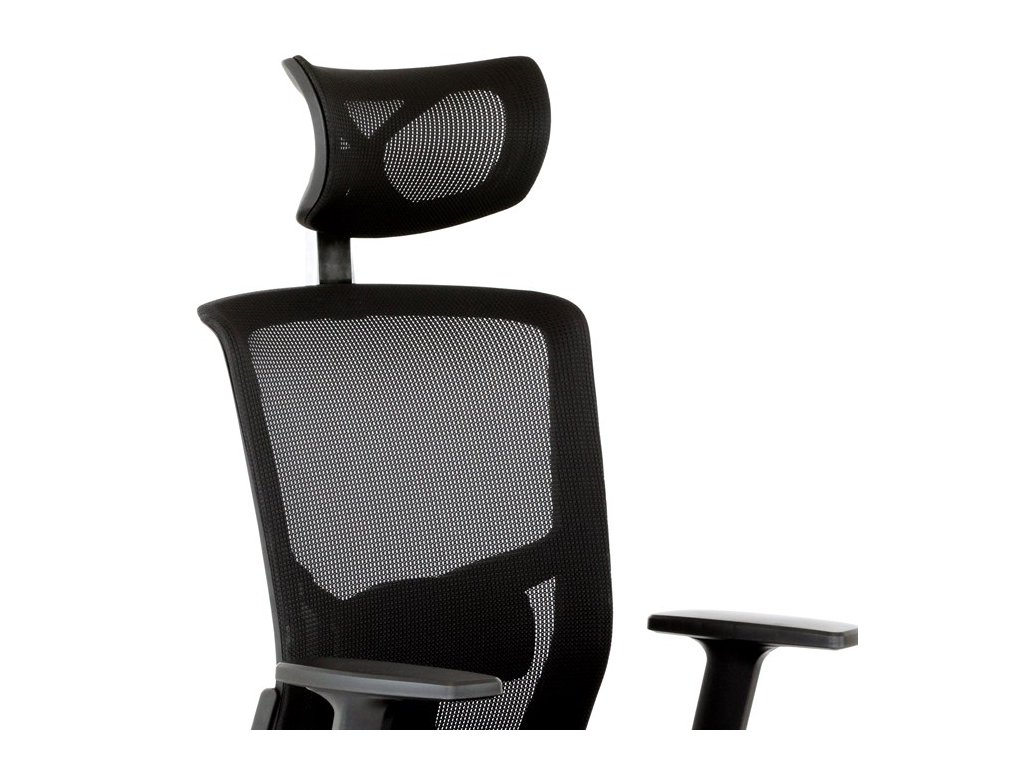 Kancelárska stolička s výškovo nastaviteľnými podrúčkami, pasívnou bedrovou opierkou, polohovacou opierkou hlavy a plastovým krížom s plastovými kolieskami vhodnými na koberce. Operadlo je potiahnuté sieťovinou a sedák je očalúnený čiernou látkou. Stolička je výškovo nastaviteľná s hojdacím mechanizmom. Farba: čierna Rozmery (šírka x hĺbka x výška): 50-64 x 48-57 x 118-125 cm, výška sedu 40-47 cm Nosnosť stoličky je až 120 kg. Dodávané v demonte. Záruka 24 mesiacov.Dodatočné parametre