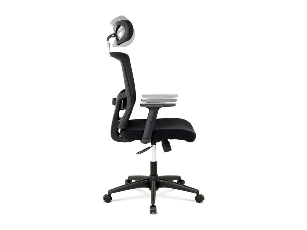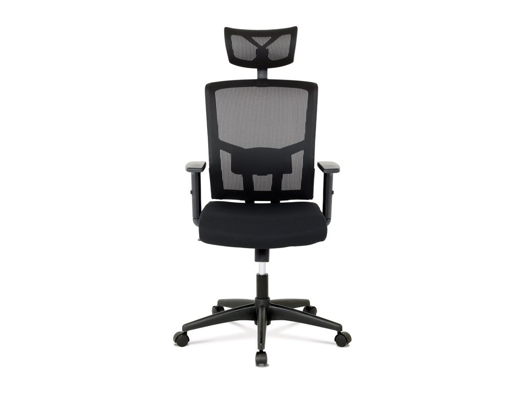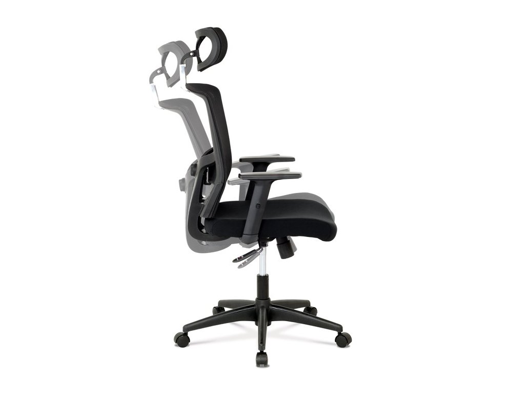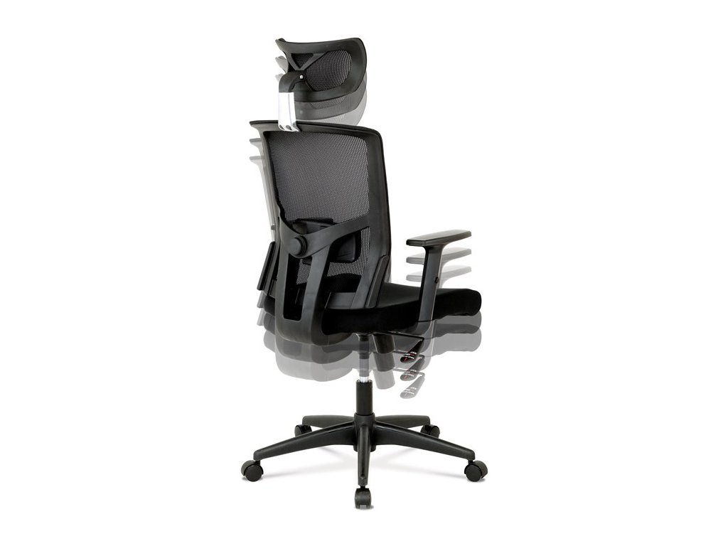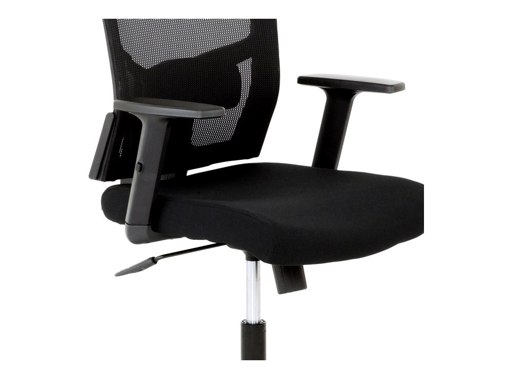 Kancelárska stolička s výškovo nastaviteľnými podrúčkami, pasívnou bedrovou opierkou, polohovacou opierkou hlavy a plastovým krížom s plastovými kolieskami vhodnými na koberce. Operadlo je potiahnuté sieťovinou a sedák je očalúnený čiernou látkou. Stolička je výškovo nastaviteľná s hojdacím mechanizmom. Farba: čierna Rozmery (šírka x hĺbka x výška): 50-64 x 48-57 x 118-125 cm, výška sedu 40-47 cm Nosnosť stoličky je až 120 kg. Dodávané v demonte. Záruka 24 mesiacov.Dodatočné parametre