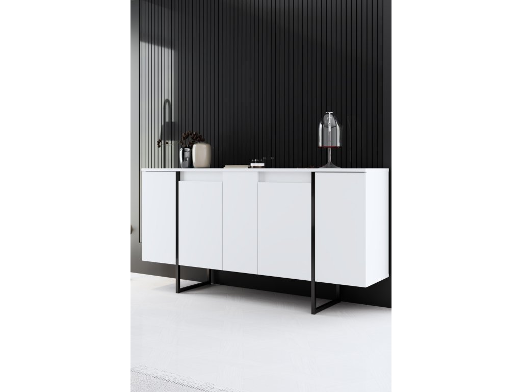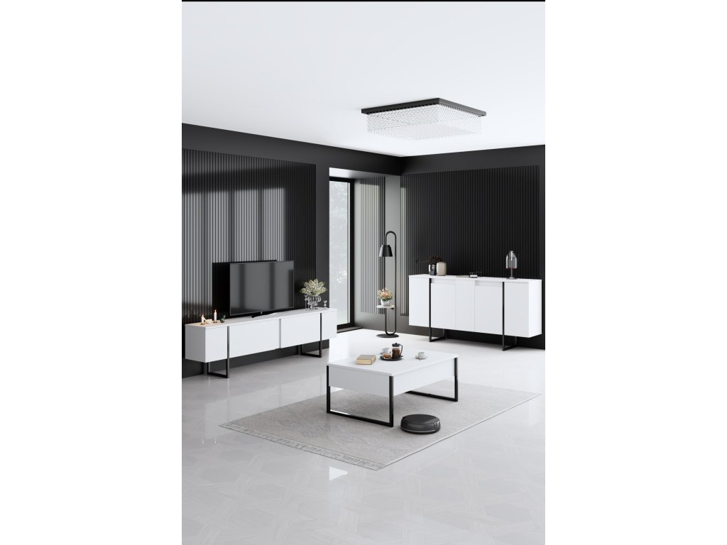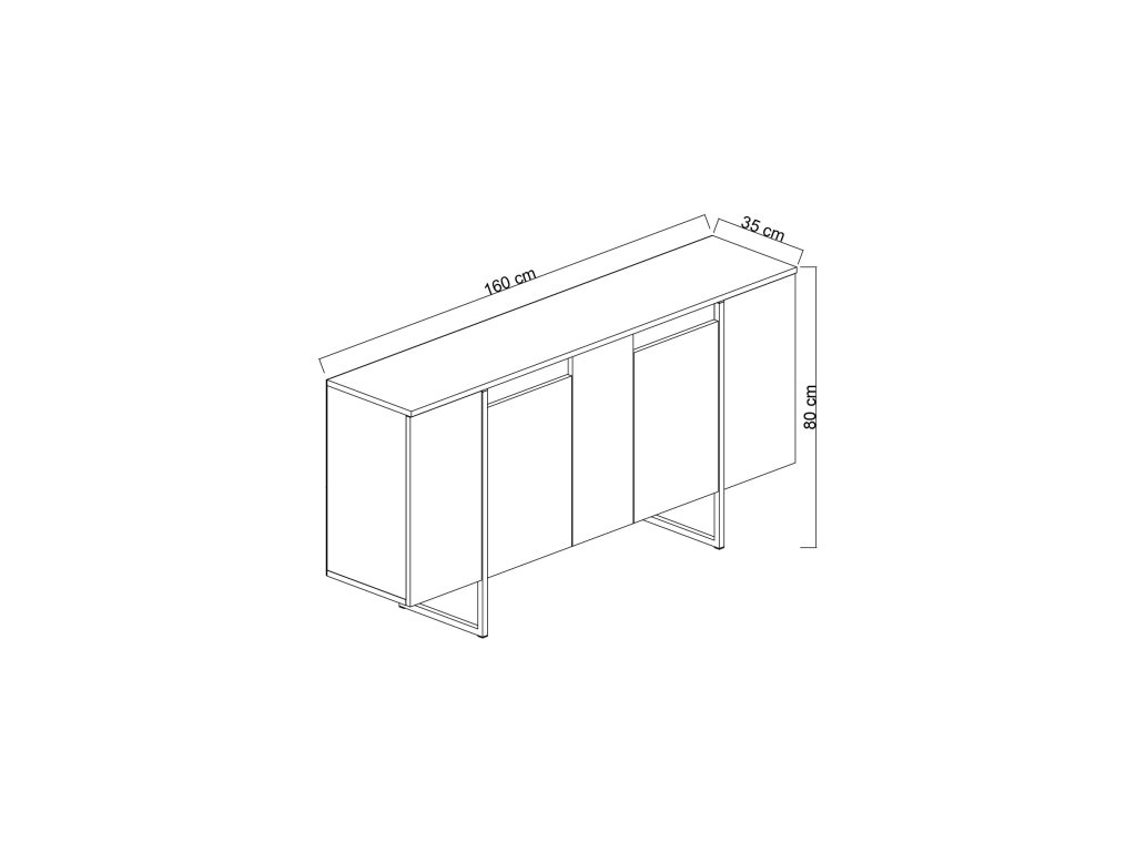 Technické detaily: Materiál: Materiál: 100% melamínom potiahnutá drevotrieska Hrúbka: 18 mm Kovové nôžky pre väčšiu stabilitu Šírka: 160 cm Hĺbka: 35 cm Výška: 80 cm Farba: biela a čierna Dodávané v demonte.Dodatočné parametre