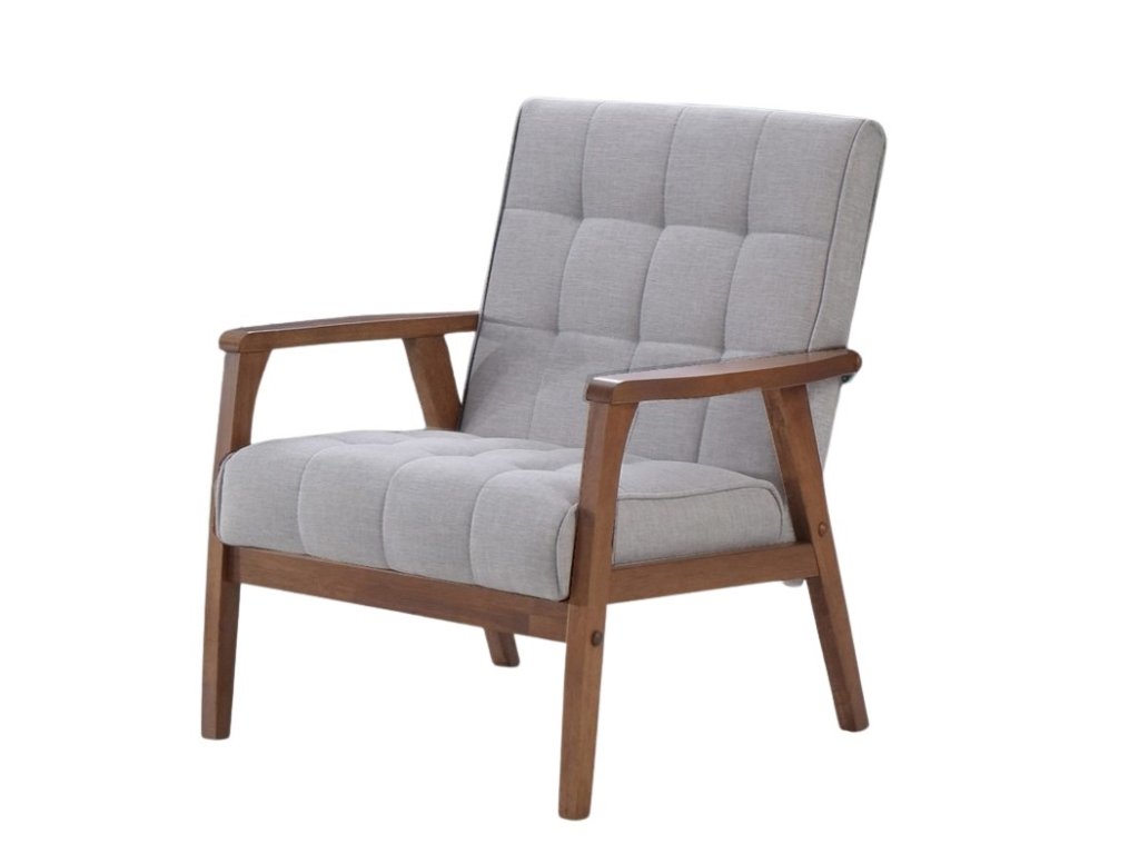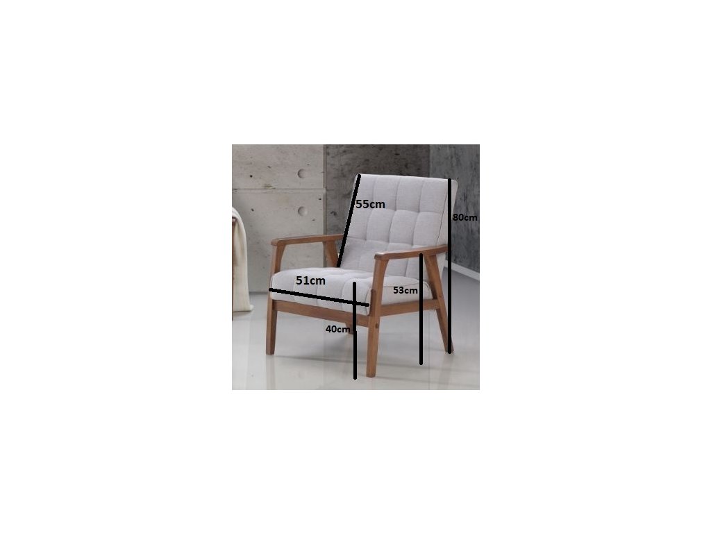 Elegantné kreslo v retro štýle. Farba: orech/svetlo šedá Materiál: masív malajský dub/látka/PUR pena Rozmery (šxvxh): 65 x 82 x 76 cm Výška sedu je 35 cm a hĺbka sedu je 52 cm. Nosnosť je 130 kg. Dodávané v demonte.Dodatočné parametre