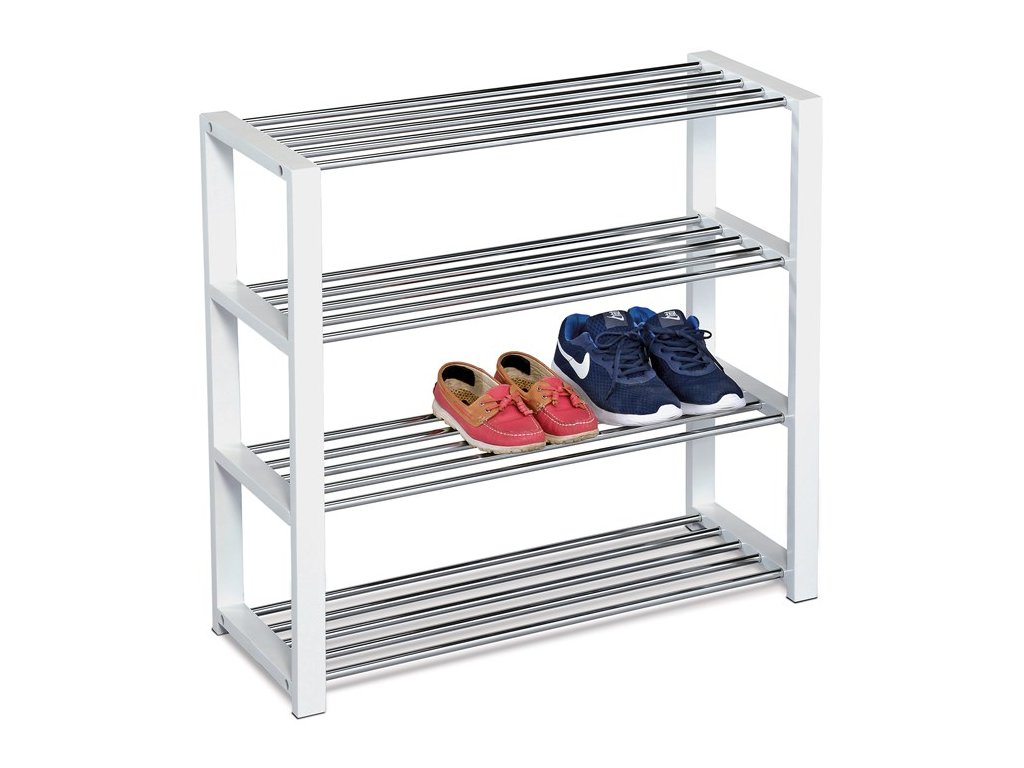 Policový botník QUINCY 14, chróm / biela