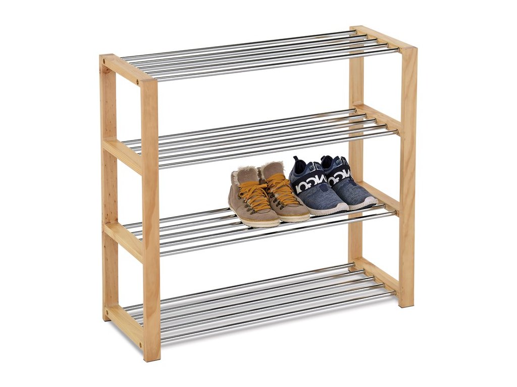 Policový botník QUINCY 14, chróm/natural