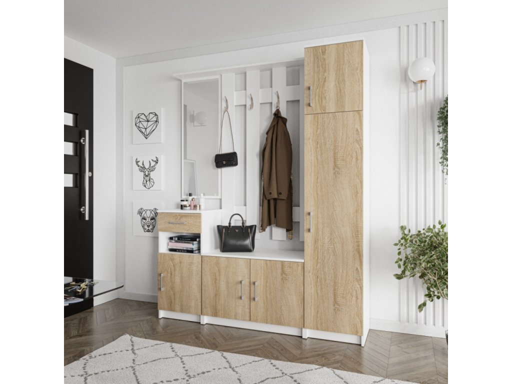 Predsieňová stena NEJBY MARIANA, biela/dub sonoma