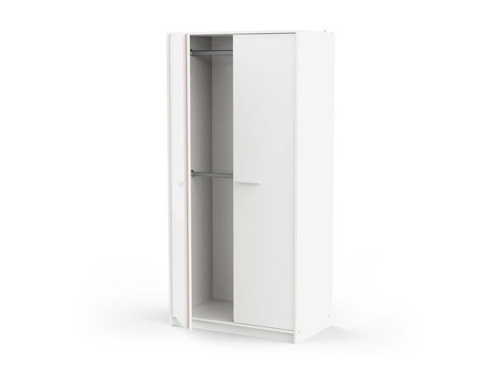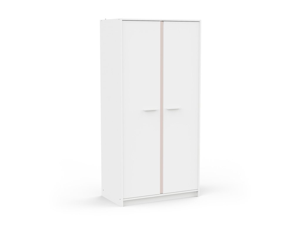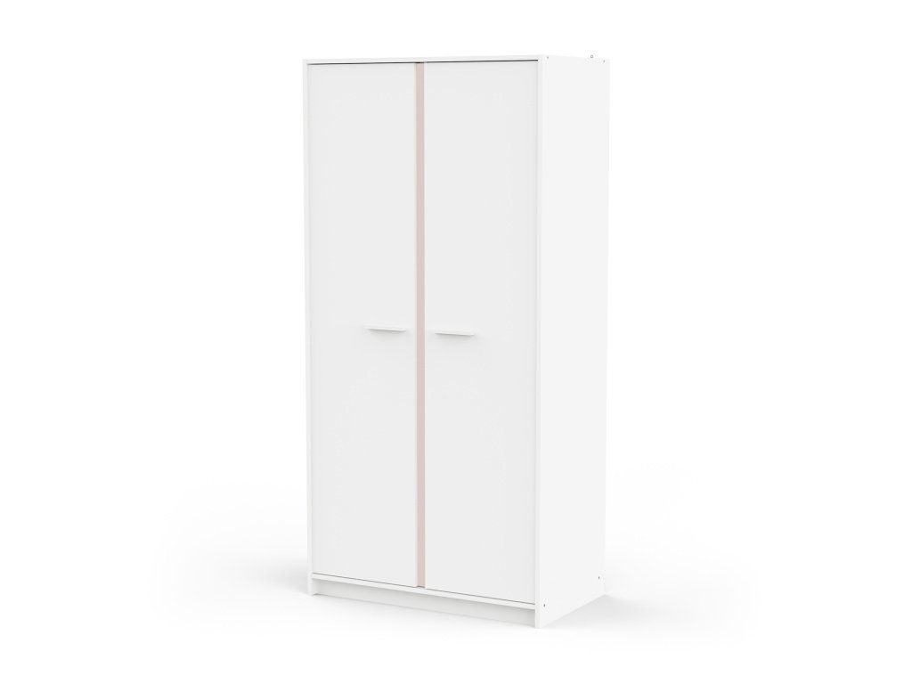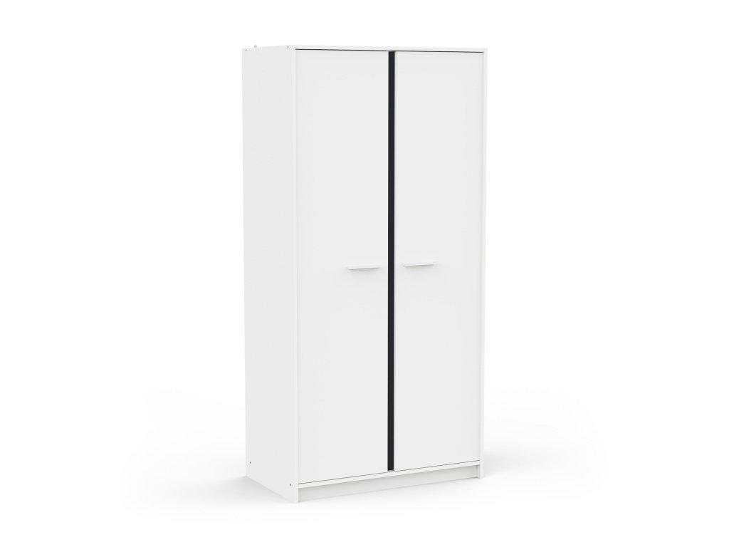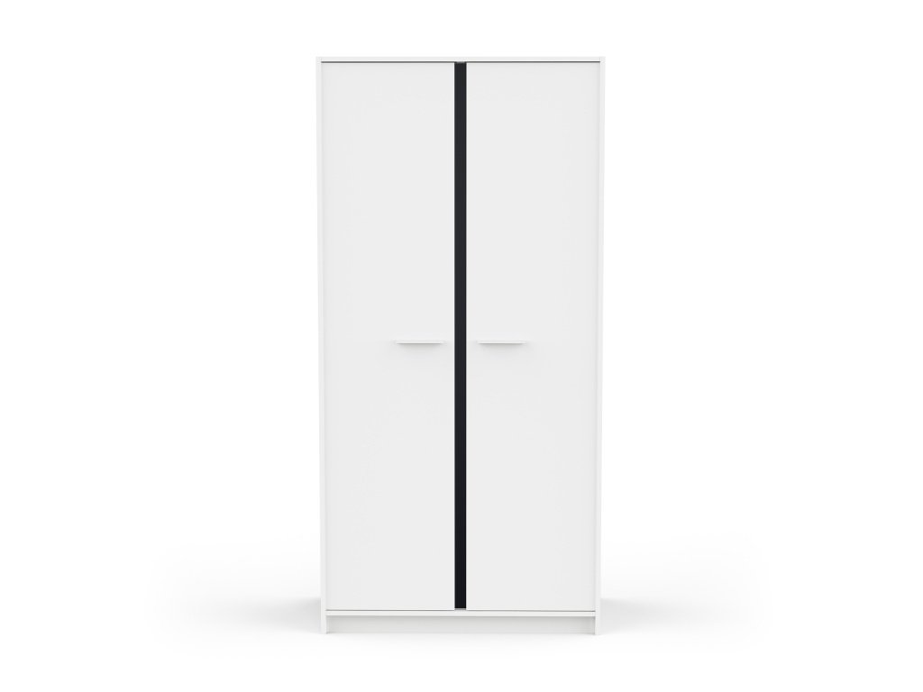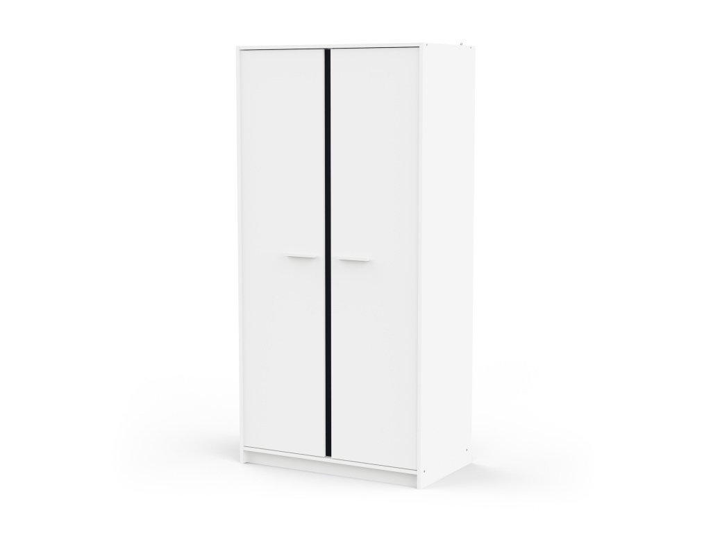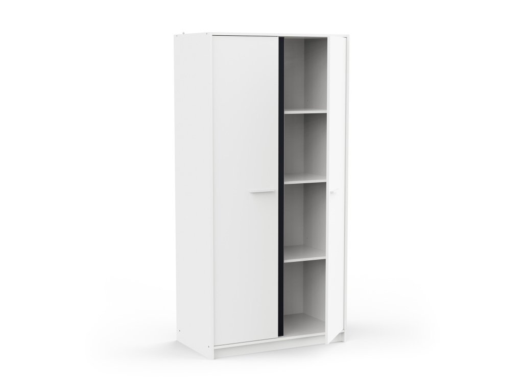 Skriňa s policami a 2 šatníkovými tyčami Farba: biela - modrú (indigo) alebo marhuľovú farbu pásku si zvolíte pri montáži Materiál: lamino 15/18 mm Rozmery (šírka x výška x hĺbka): 88,3 x 180,9 x 50 cm Dodáva.Dodatočné parametre