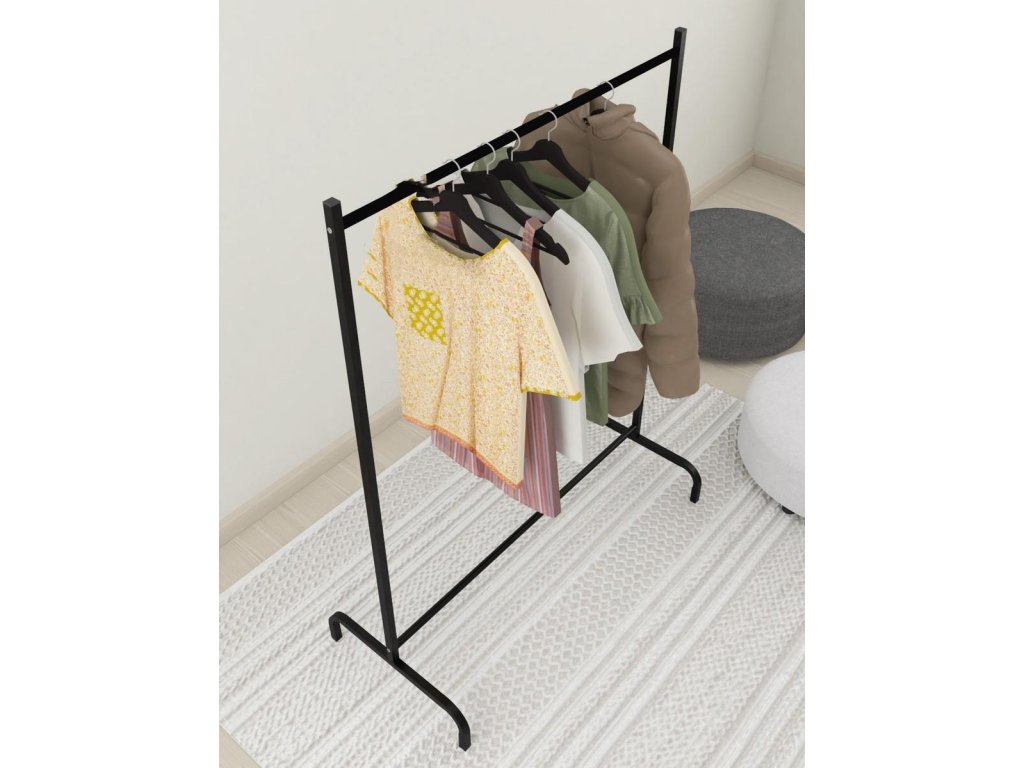 Praktický vešiak na šaty. Farba: čierna Materiál: kov Rozmery (šxvxh): 104 x 137 x 48 cm Dodávané v demonte.Dodatočné parametre